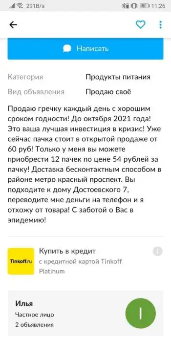 11. По мнению авторов объявлений, именно так сейчас выглядят товары первой необходимости