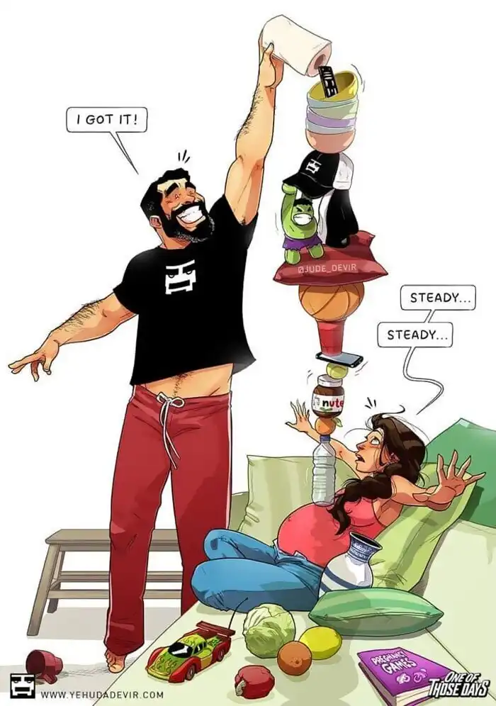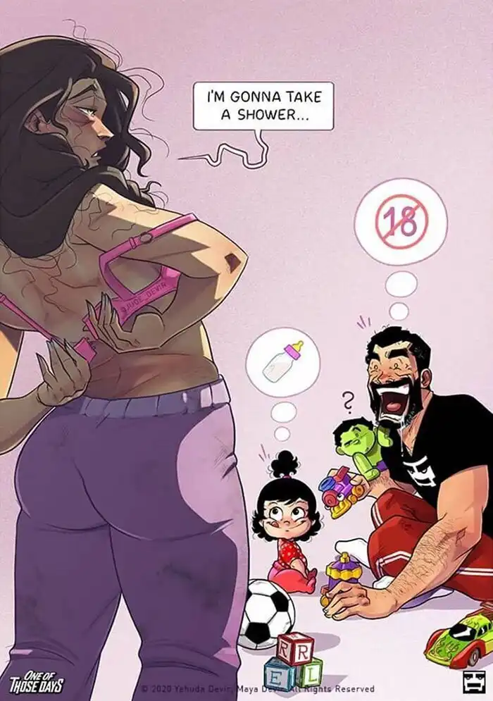 Художник-иллюстратор Иегуда Девир известен в соцсетях веселыми комиксами о жизни своей семьи. Недавно Иегуда и Майя стали родителями - и теперь Иегуда в редкие свободные минуты рисует комиксы о тяжелой родительской доле.