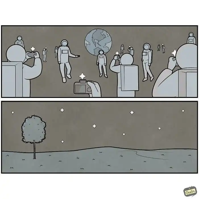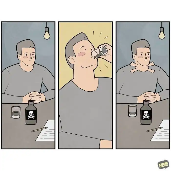 Иллюстратор Антон Гудим живет в Москве, и уже несколько лет рисует сатирические, где-то странные, а где-то - до боли правдивые комиксы о современности. В своих работах он высмеивает современные стандарты, популярные тенденции, и просто рисует скетчи с неожиданными концовками. Над некоторыми из них придется задуматься!
