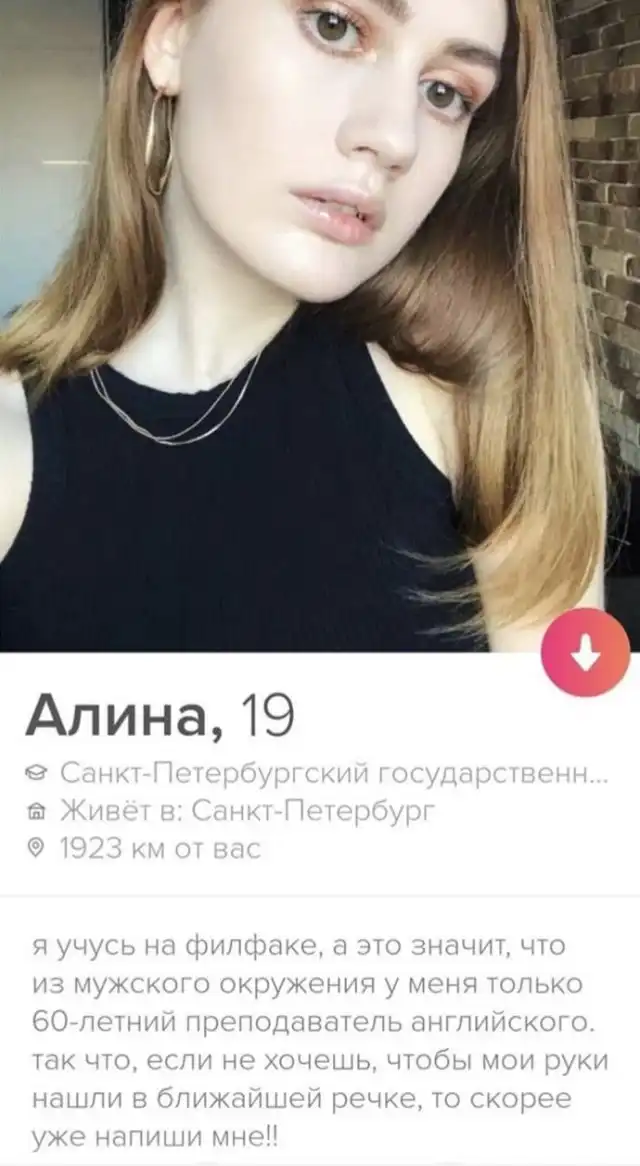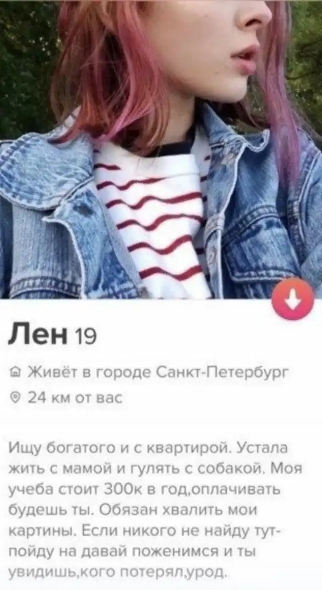 Раньше вы могли часто слышать фразы типа "вы познакомились в интернете - фууу", потому что это считалось чем-то постыдным. Но сейчас реалии изменились и большинство людей встречают свою любовь именно там. Посмотрим, вдруг кто-то из этих анкет вас привлечет?