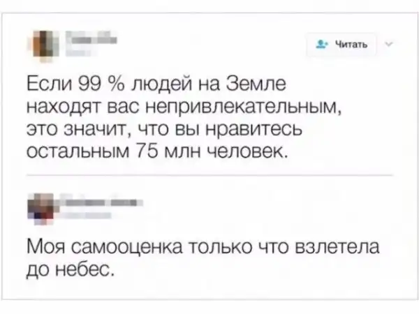 У некоторых людей самооценка сильно занижена. Иногда дело в них самих, иногда в окружающих их людях. Как бы там ни было, остаются желающие пошутить над своей проблемой.
