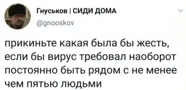 Пандемия коронавируса, к сожалению, привела к тому, что добрая часть шуток в социальных сетях посвящена карантину, болезни и прочему. Однако шутки довольно годные.