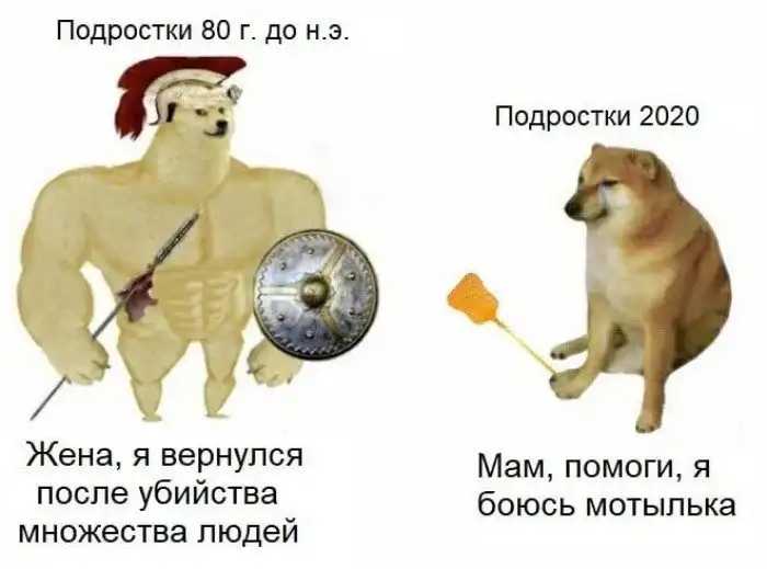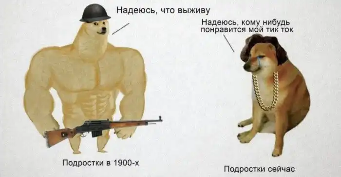 Чаще всего мем противопоставляет молодых людей из 20 века, готовых ко всем тяжбам жизни, и современных подростков, которые уже не представляют существования без гаджетов и имеют мало практических умений.