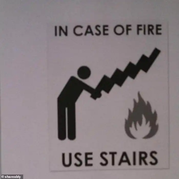 "В случае пожара воспользуйтесь лестницей".