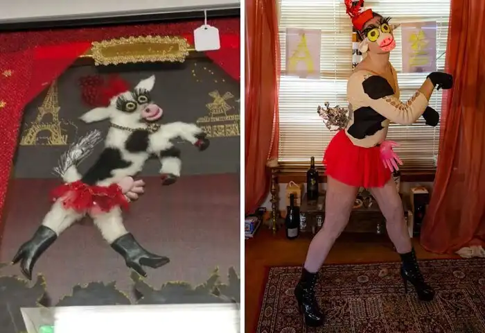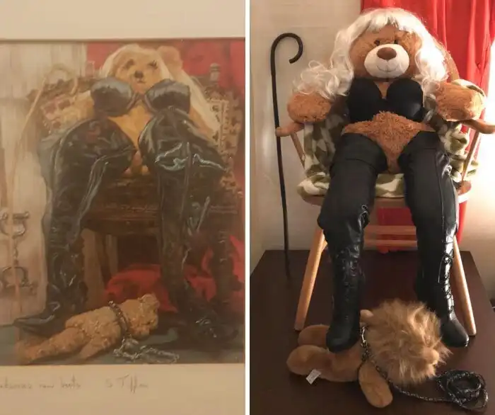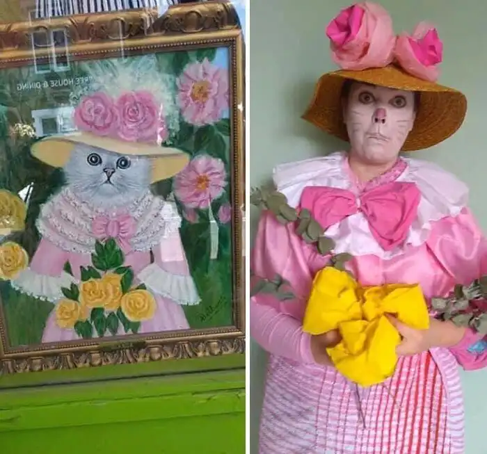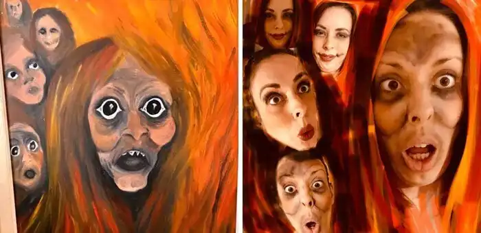 В Фейсбуке полно всяких групп, объединяющих людей с чувством юмора. Одна них - Terrible Art in Charity Shops, и в ней можно ознакомиться с огромной коллекцией произведений искусства, найденных на барахолках, распродажах и в благотворительных магазинах. А участники группы еще и добавляют смеха, воссоздавая - в духе времени - эти незабываемые полотна.