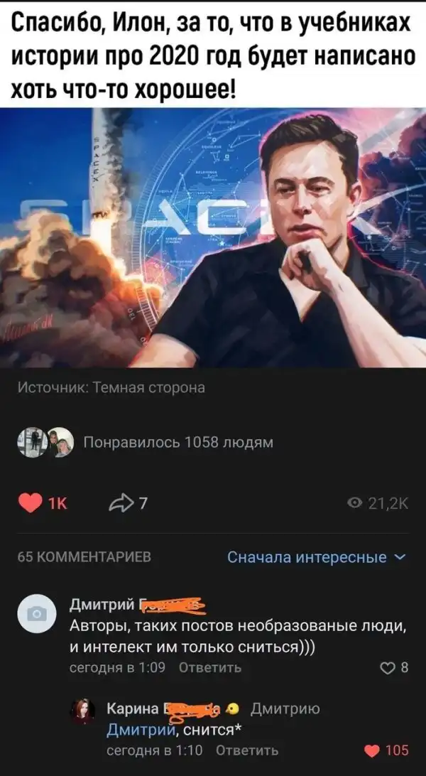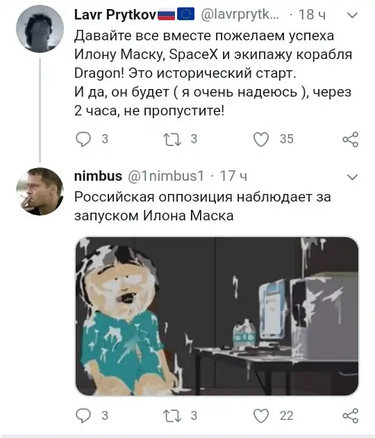 Была и вот такая реакция на запуск космического корабля Илона