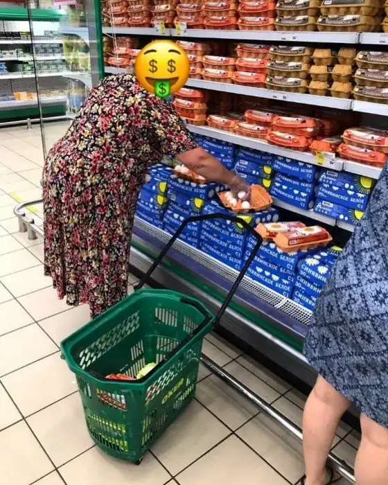 7. Бабушка открывает упаковки яиц и выбирает себе только лучшие