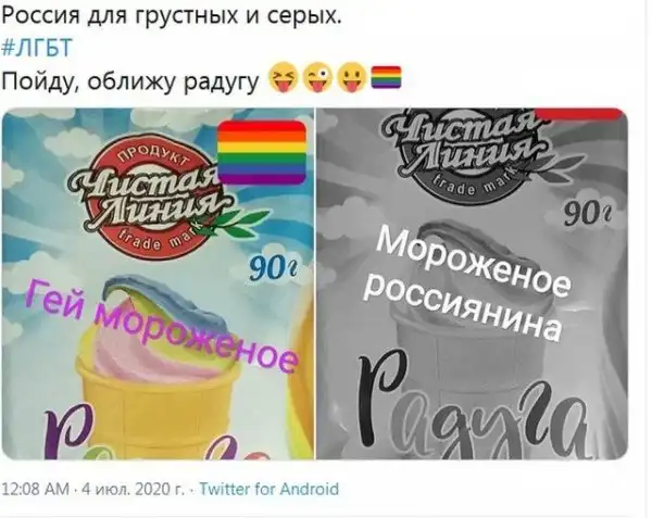 В Сети идет большая дискуссия о недавнем предложении Екатерины Лаховой отменить радугу в мороженом. Пользователи пошли дальше и нашли еще несколько вещей, где есть радуга (читай - пропаганда лгбт-сообщества), которые стоит "обесцветить".