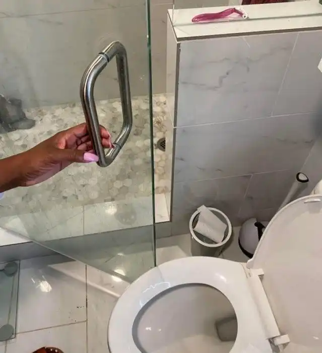 Вопрос для самых сообразительных: как попасть в душ при такой двери?