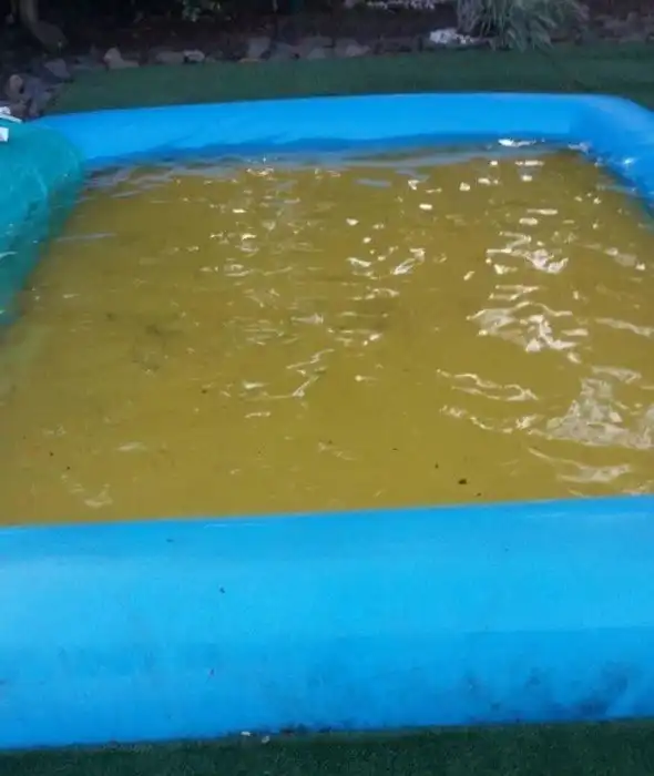 Просто желтый коврик, из пластика, лежит на дне бассейна. Отсюда и все проблемы.