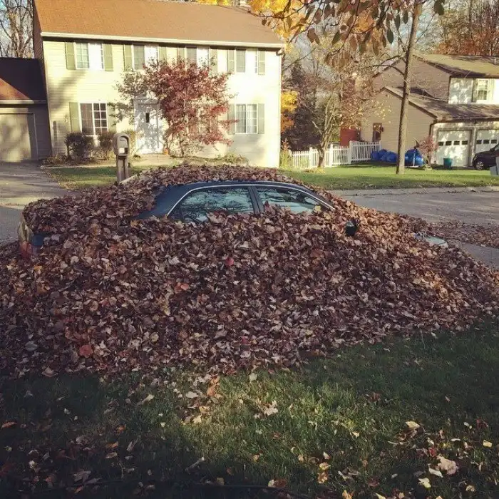 "Сын не хотел помогать убирать листья во дворе. Каким-то чудным образом они оказались у него на машине"
