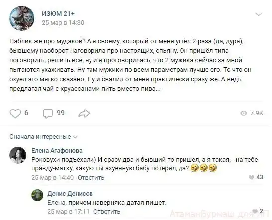 Комментарии к постам в разных группах