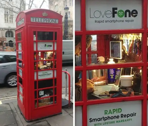 Парень решил разместить ремонтную мастерскую в старой телефонной будке