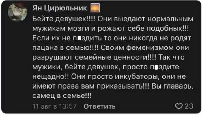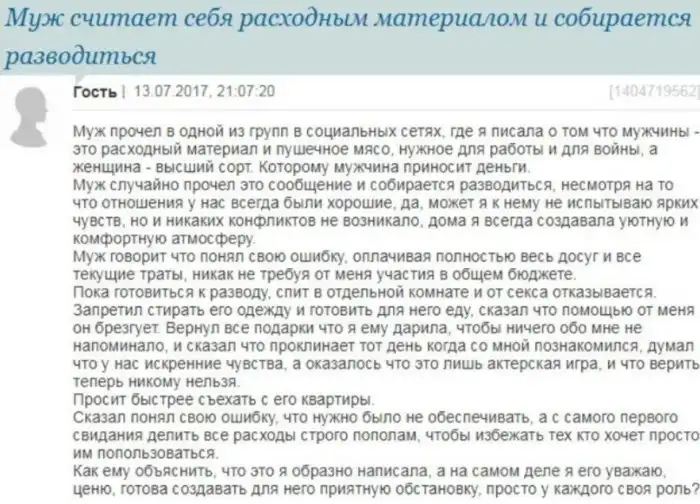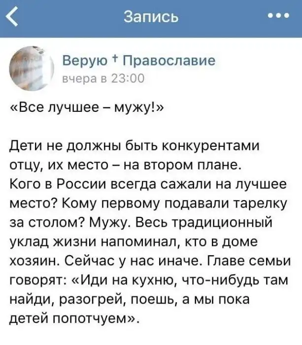 1. Возможно, феминистки в России так ненавидят мужчин из-за подобных постов?