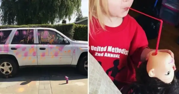 Дочь творчески подошла к макияжу куклы