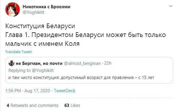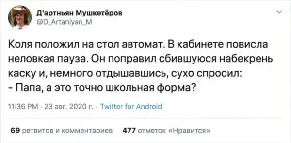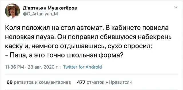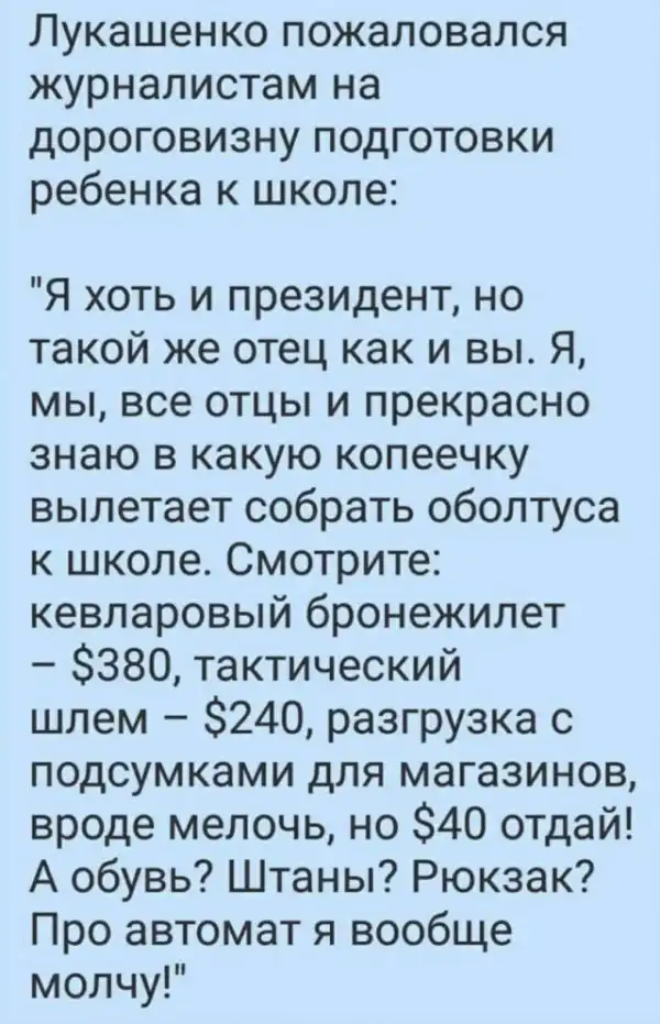 Николай Лукашенко в последнее время стал популярнее своего отца. В минувшие выходные он тоже отличился - взял в руки автомат и появился на публике в полной военной амуниции. Пользователи не могли не отметить этот факт и пошутили про сына президента Беларуси Александра Лукашенко.