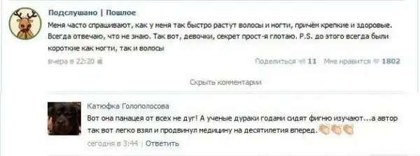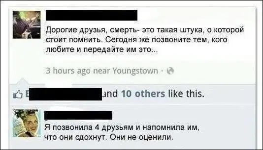 Люди ежедневно пользуются социальными сетями, где не только переписываются, но и создают какие-либо публикации. Порой - довольно странные и смешные, поэтому предлагаю поднять себе настроение и почитать.