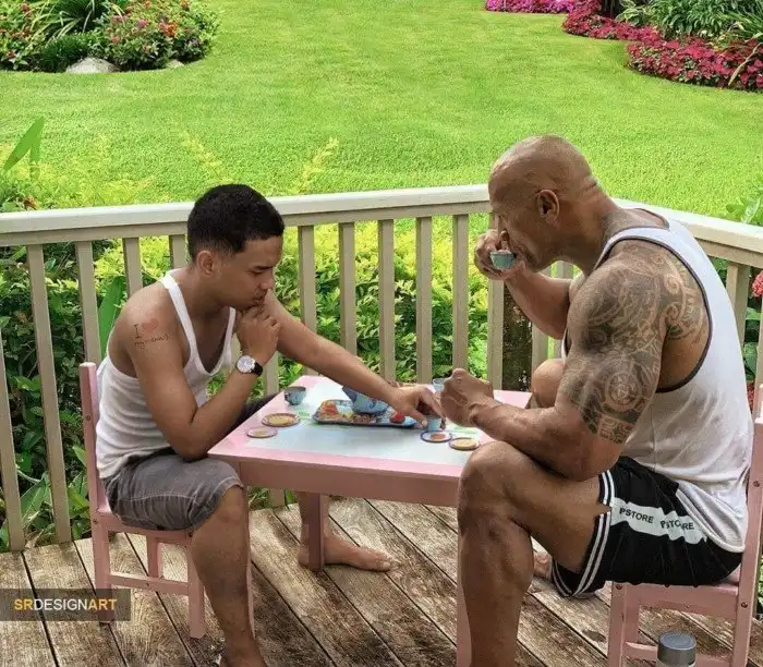 Вот, например, Сейрил пьёт чай с Дуэйном Джонсоном, которого все зовут «Скалой».
