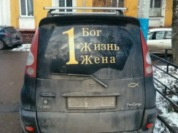Предлагаю очередную подборку нелепых наклеек на машинах, странных постов в социальных сетях и прочего, с чем можно столкнуться только в России.