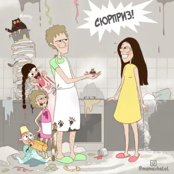Александра Власова из Москвы рисует жизненные и смешные комиксы о своих буднях многодетной мамы. Когда-то она переехала из Самары в столицу, и теперь живет там и творит в компании мужа и троих детишек: Амелии, Василисы и Димы. Ее комиксы сильно отличаются от обычных «мамских»: они приправлены значительной долей сарказма и умением посмеяться над собой.