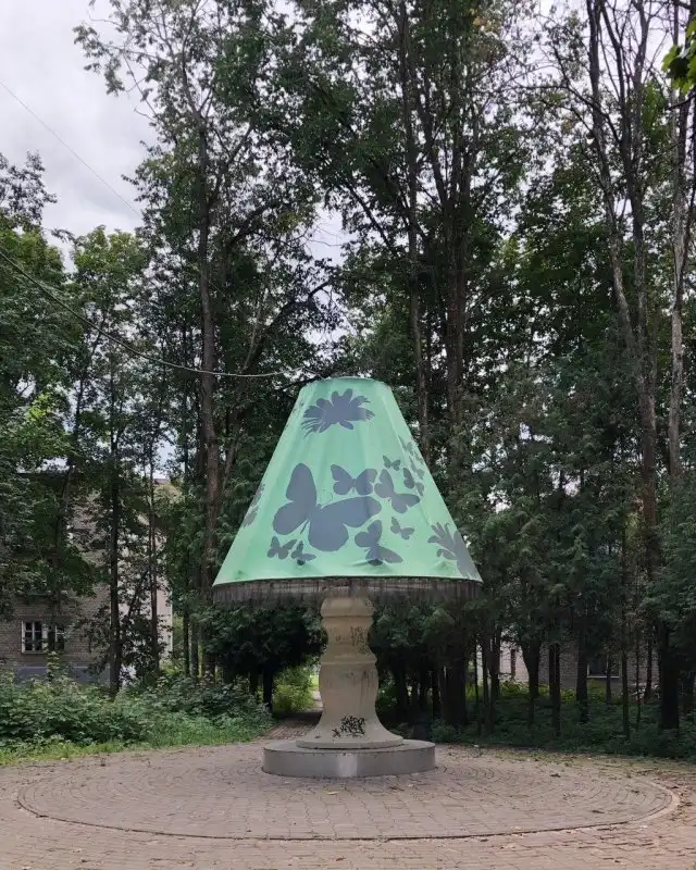 Гигантская лампа во внутриквартальном скверике в подмосковном Селятино.