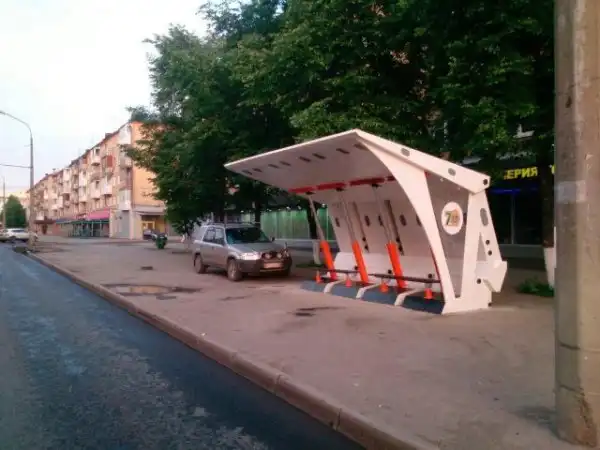 В Кемерово делают остановочные павильоны в виде шахтерских крепей. Хорошее решение для индустриального региона.