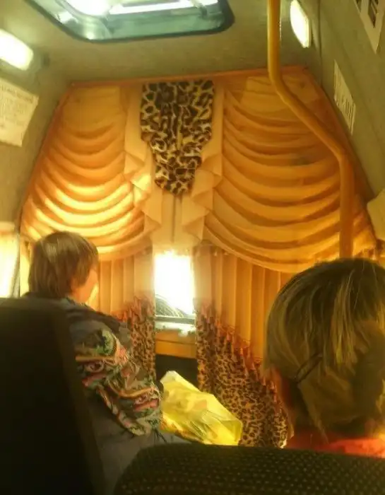 2. Снимок словно с другой планеты... Ни тебе масок, перчаток... просто столик и тюль с лампой в автобусе. Идеально