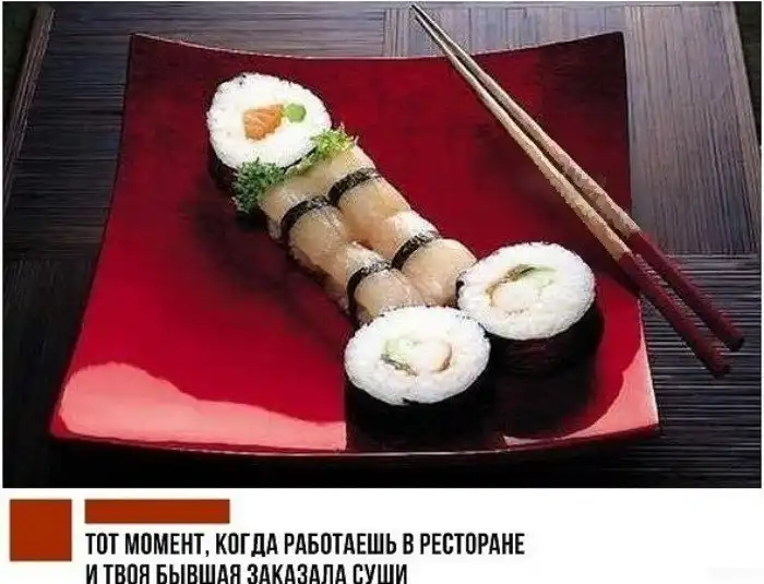 2. Позвал девушку поесть роллы, она никогда раньше их не пробовала: в итоге съела серединку