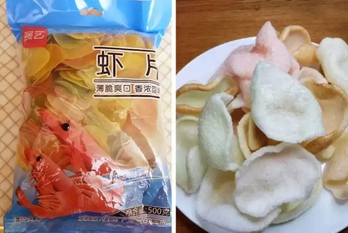 «Пластмассовые» чипсы из Китая. Чтобы их приготовить, нужно нагреть масло и окунать туда по чипсине. Критерий готовности — «раскрытие» и съедобный вид