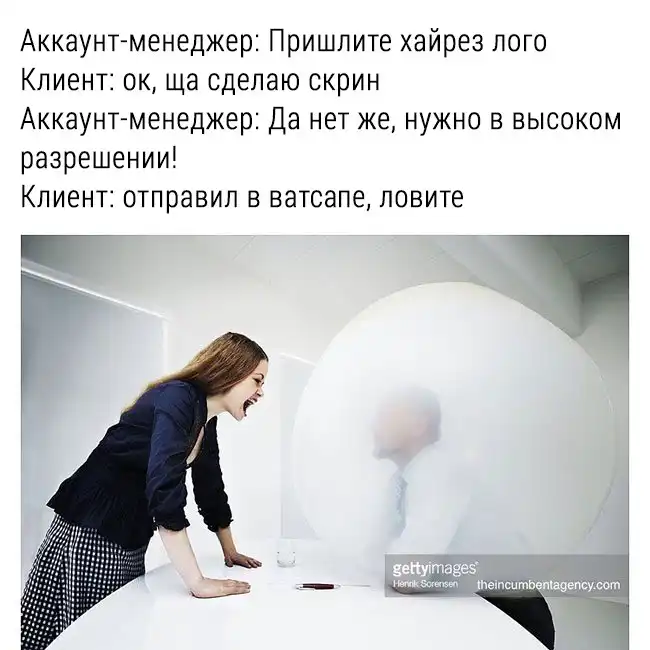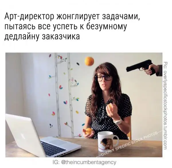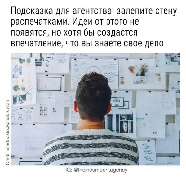 Все мы уже устали от клишированных стоковых фото. Однако The Incumbent Agency, магазин мерча, вдохновленного индустрией рекламы, нашел им смешное применение и превратил в отличные мемы о жизни в рекламном агентстве.