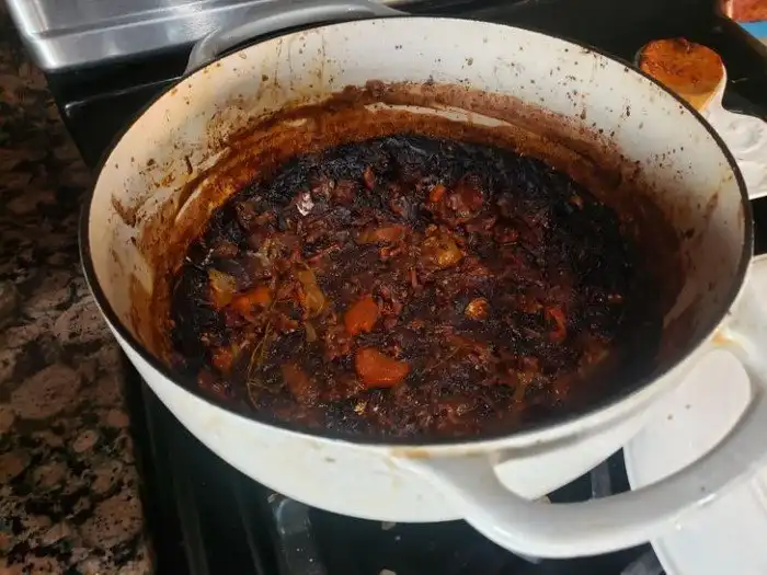 «Ужин на нашу 3-летнюю годовщину превратился в уголь. Предполагалось, что это будет говядина по-бургундски. 4 часа моей жизни на ветер»