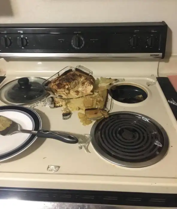 «Я просто пытался приготовить ужин для моей девушки, а стеклянный противень взорвался прямо в духовке через каких-то 5 минут»