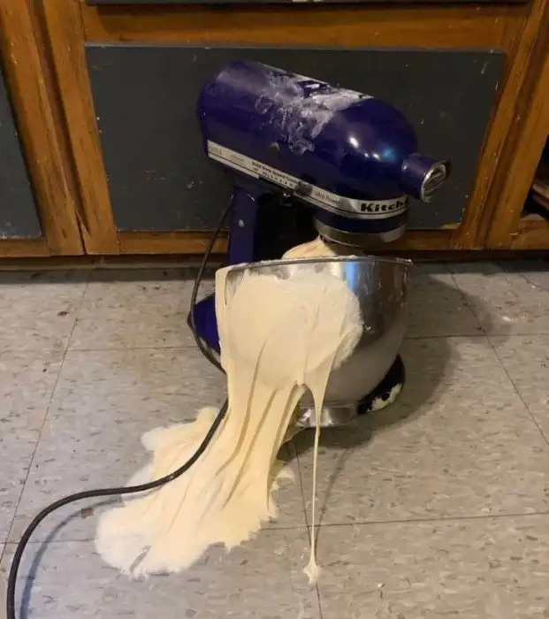 «Мой миксер сегодня рухнул со столешницы при замешивании теста»