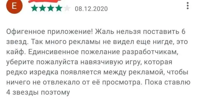 Идеальный отзыв. Подходит для половины бесплатных приложений