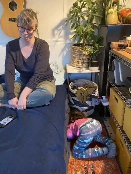 11. «Вот так спряталась моя четырёхлетняя племянница. Моя жена слева, она водит»