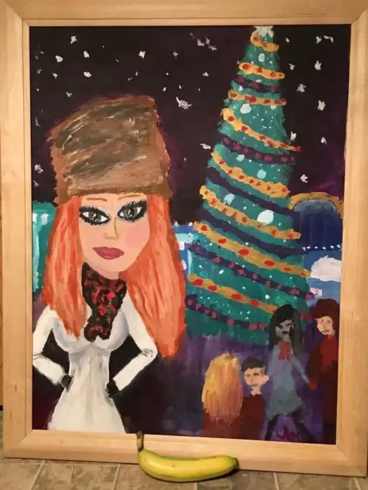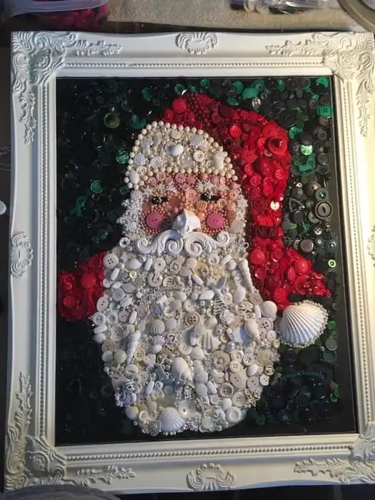 Портрет Санты из пуговиц, ракушек и прочих мелочей