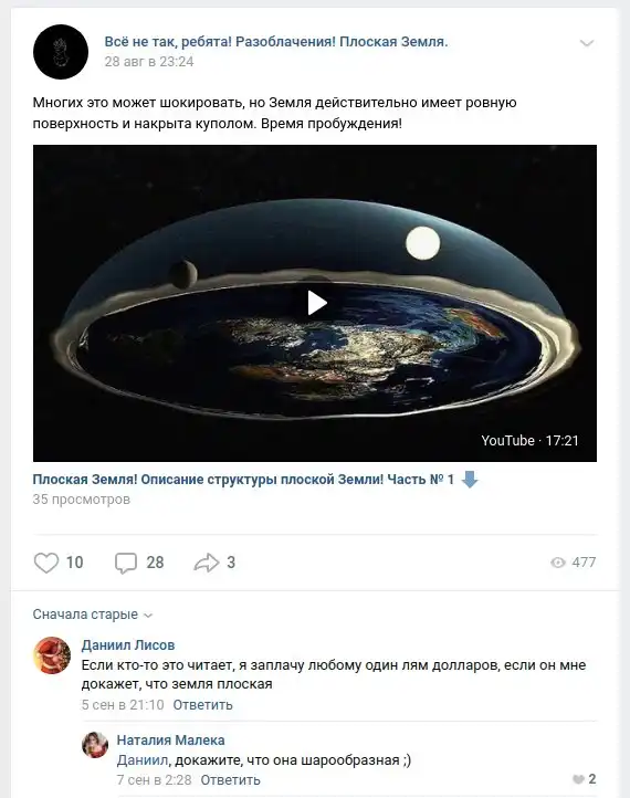 Не поленился залезть в сообщества, посвящённые теме плоской Земли.