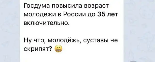 Шутки и мемы про повышение возраста молодежи до 35 лет