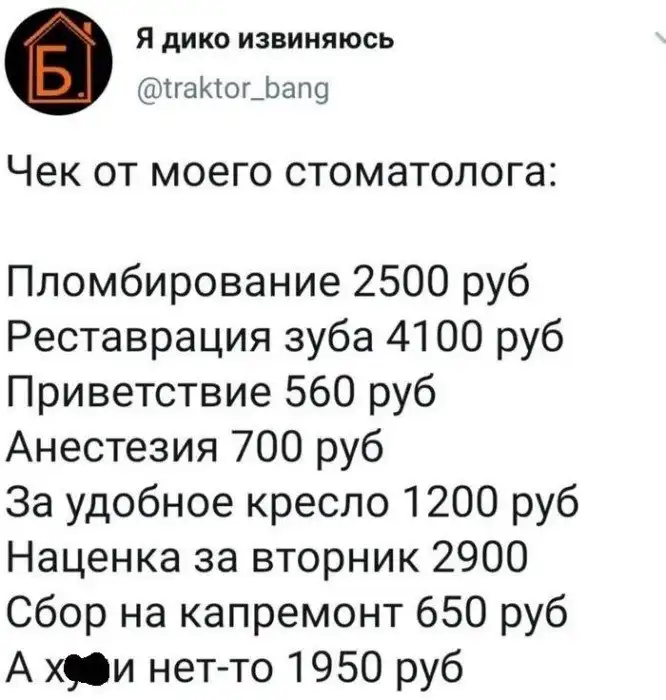 Самые оборзевшие чеки только в стоматологических клиниках