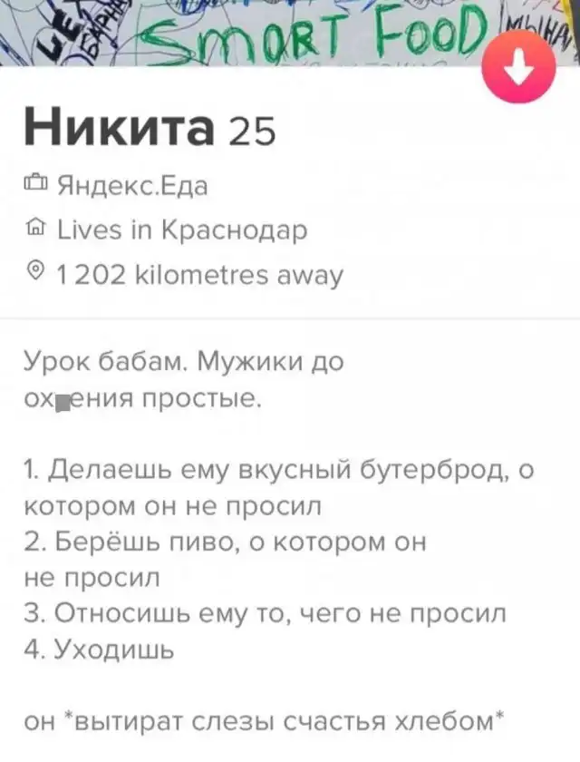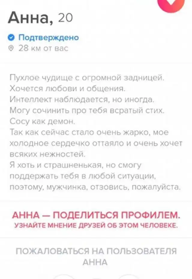 Прикольная картинка и описание в приложении для знакомств - половина дела! На вас обратят внимание другие люди и, соответственно, повысится шанс найти вторую половину. Правда, иногда в погоне за "оригинальностью", люди слегка перебарщивают.