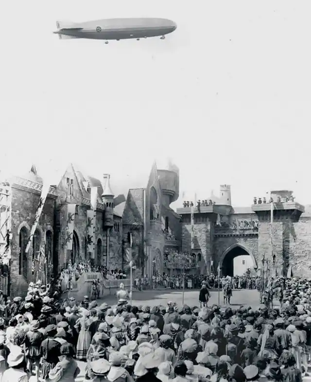 Цеппелин пролетает над студией Cosmopolitan, штат Нью-Йорк, 1927 год.