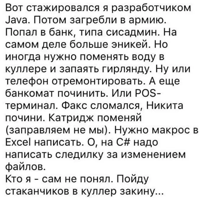3. Как по мнению некоторых проходит рабочий день сисадминов