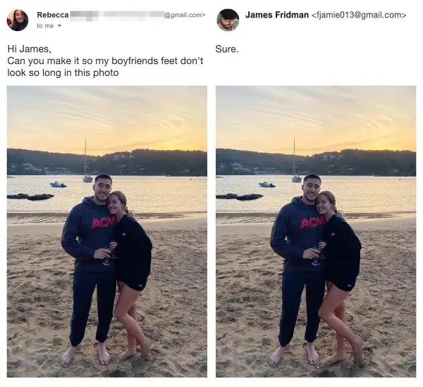 Можешь сделать так, чтобы ступни моего парня не выглядели такими большими?