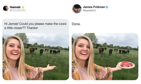 Можешь сделать так, чтобы коровы были поближе? Спасибо!