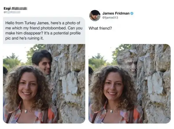 Можешь, пожалуйста, убрать парня сзади, он немного портит фотографию?