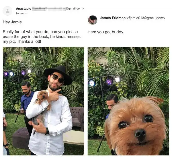 Вот фото, которое испортил мой друг. Можешь сделать так, чтобы он исчез?