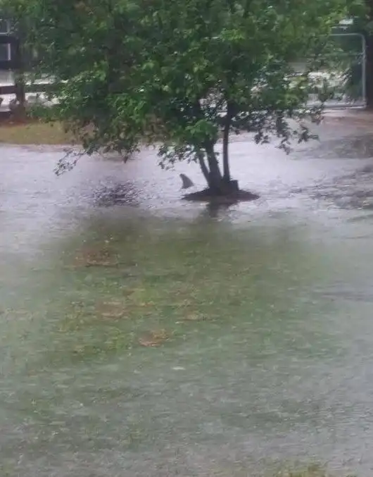 Шёл дождь, и тут мы увидели плавник на заднем дворе