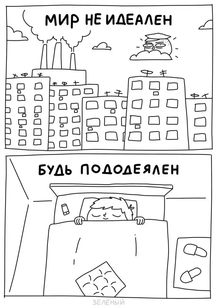 5. Иллюстратор шутит на абсолютно разные темы, порой не привязанные к актуальным событиям, давая волю своей фантазии