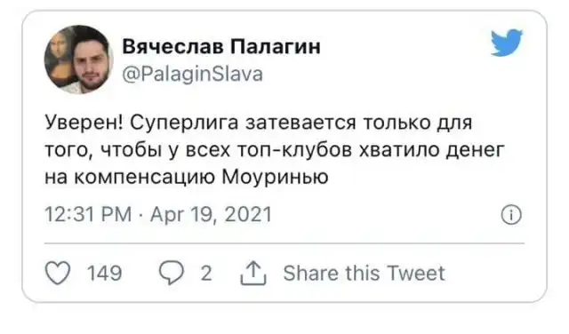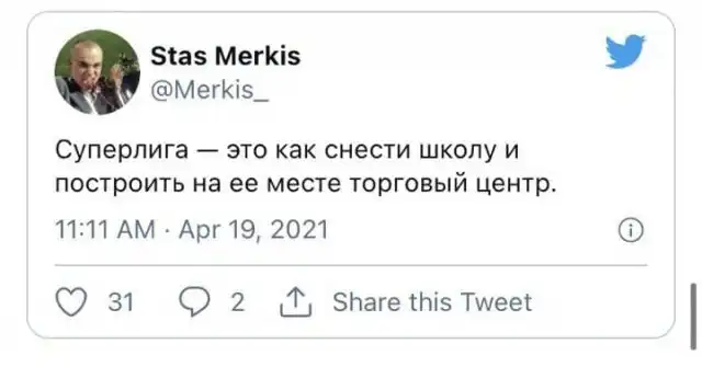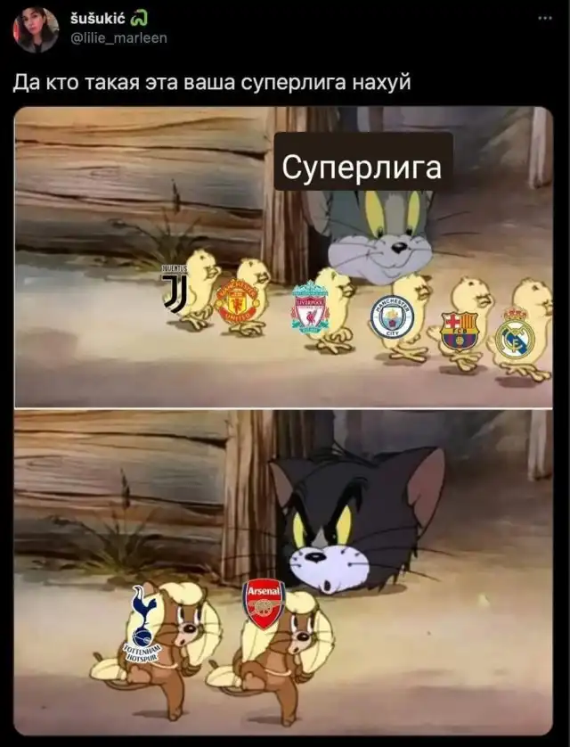 Несколько дней весь футбольный мир говорит о создании Суперлиги. 12 топ-клубов Европы объединились, чтобы создать супертурнир с огромными призовыми деньгами. Сразу оговоримся, российских клубов в ней нет. Правда, против этого выступила УЕФА, в обход которой и появилась эта лига. Она пригрозила миллиардными штрафами, а также исключением из всех чемпионов и клубов игроков. Естественно, в такой ситуации гранды футбола стали сливаться, что породило кучу шуток и мемов на эту тему.