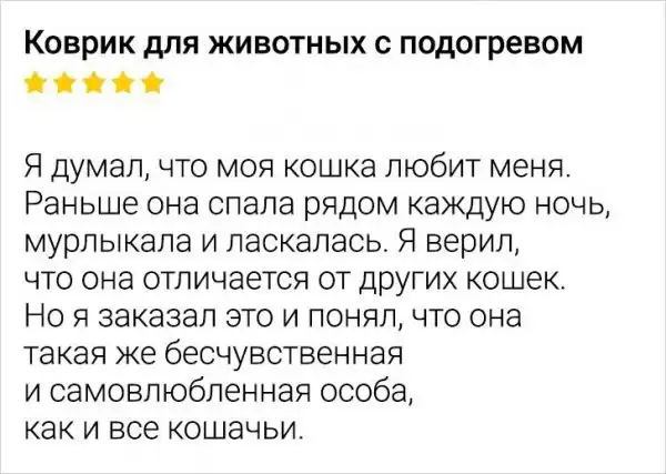 Совсем недавно покупать что-либо в интернете считалось чем-то серьезным, непонятным и волнительным. А сегодня миллионы людей заказывают в Сети все, что душе угодно. От пачки макарон до дорогостоящей и хрупкой техники. И чтобы не попасть на непроверенного продавца или компанию, люди пишут отзывы, которые чаще всего оказываются информативней и полезней, чем само описание товара. А порой эти отзывы еще и могут рассмешить, так как их пишут люди с хорошим чувством юмора.